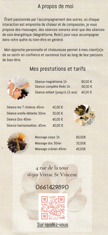 Ils vous accueillent et contribuent à faire vivre et revivre le village... Cliquez sur la plaque ci-dessous pour en savoir plus... ![]() Deux nouvelles offres de soins du corps et de l'esprit à Vitrac ! ![]() ![]()