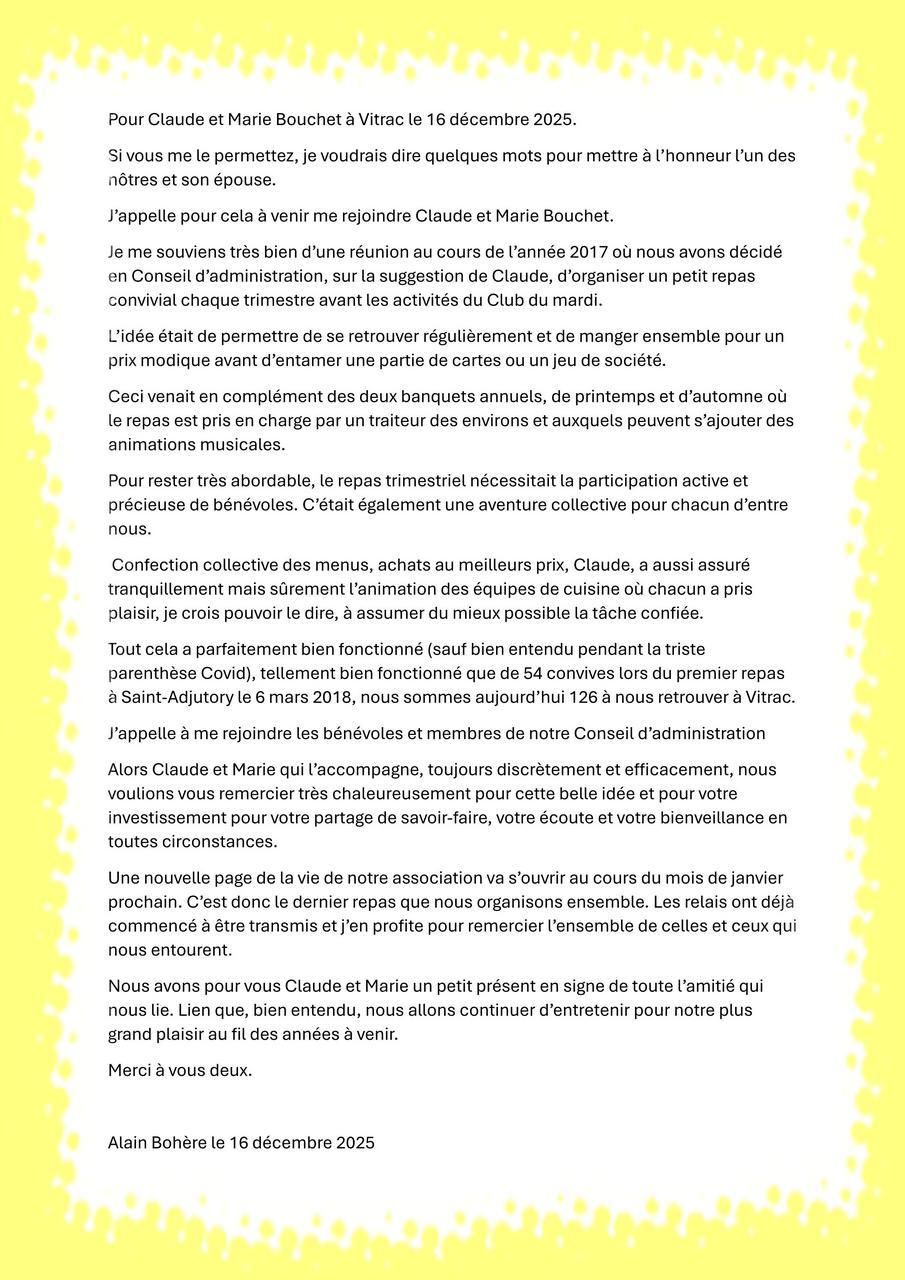 Courrier aux adhérents : Vitrac le 8 mars 2025,