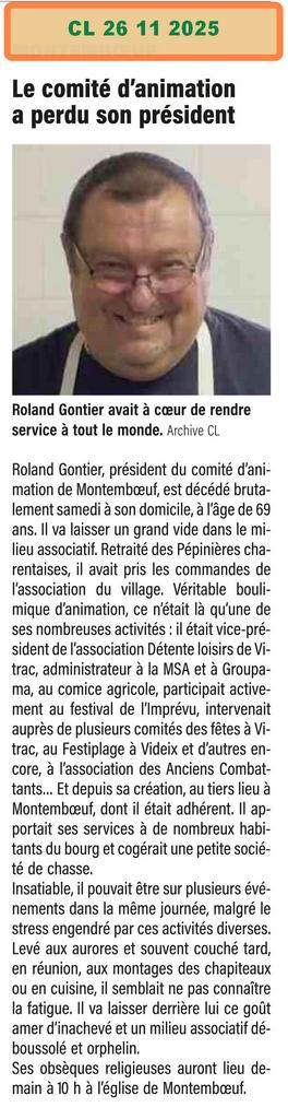Montemboeuf qu'il présidait et à toutes celles et tous ceux