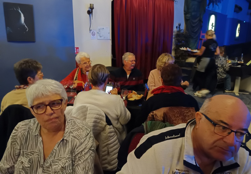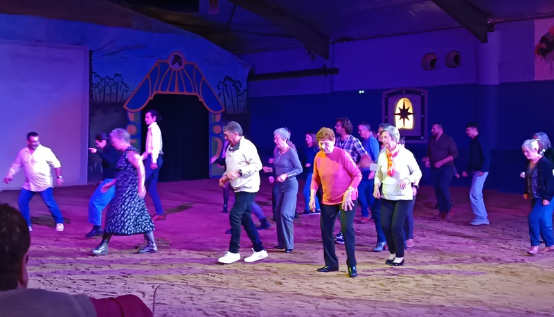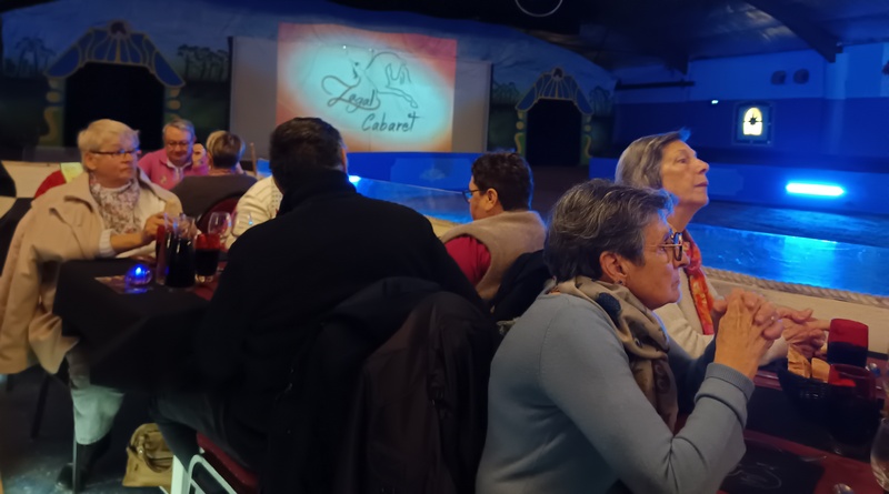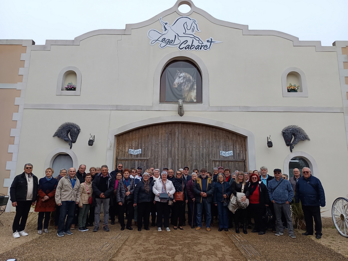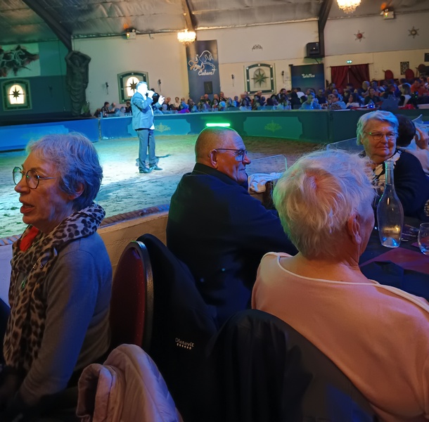 Chaque fin d’année, l’association Détente-Loisirs propose une sortie festive « cabaret » à ses adhérents. Cinquante-trois d’entre eux sont allés au cabaret Zagal à La Palmyre pour assister au spectacle équestre « Les Portes du temps ». Une chanteuse, un chanteur et une accordéoniste ont brillamment agrémenté le temps du repas pendant qu’un magicien « close-up » passait de tables en tables pour proposer des tours de passe-passe bluffants. Le spectacle qui a suivi, a enchanté tout le monde. Poésie, prouesses des cascadeurs et des voltigeuses, acrobaties aériennes, humour ont été les ingrédients d’un après-midi particulièrement réussi dont les chevaux constituaient les vedettes principales. Du pur bonheur !