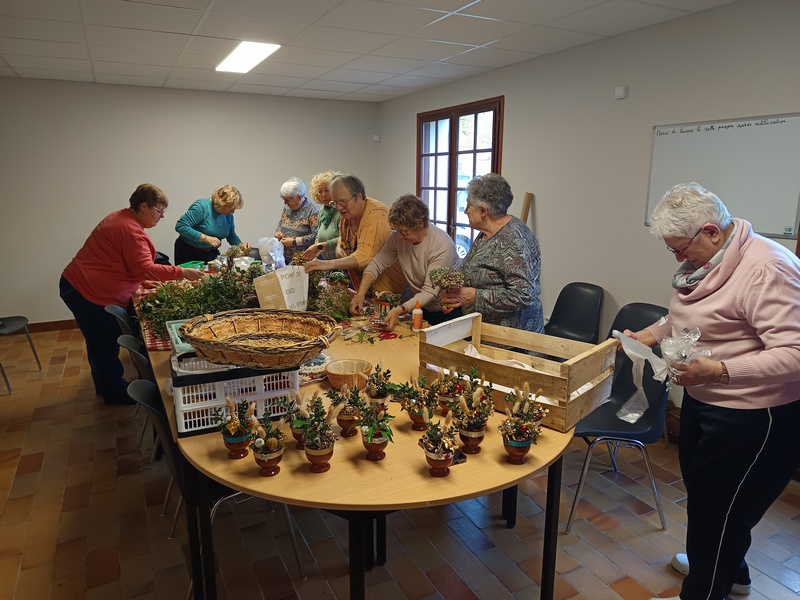 Préparation de la décoration du repas par l'atelier Loisirs Créatifs