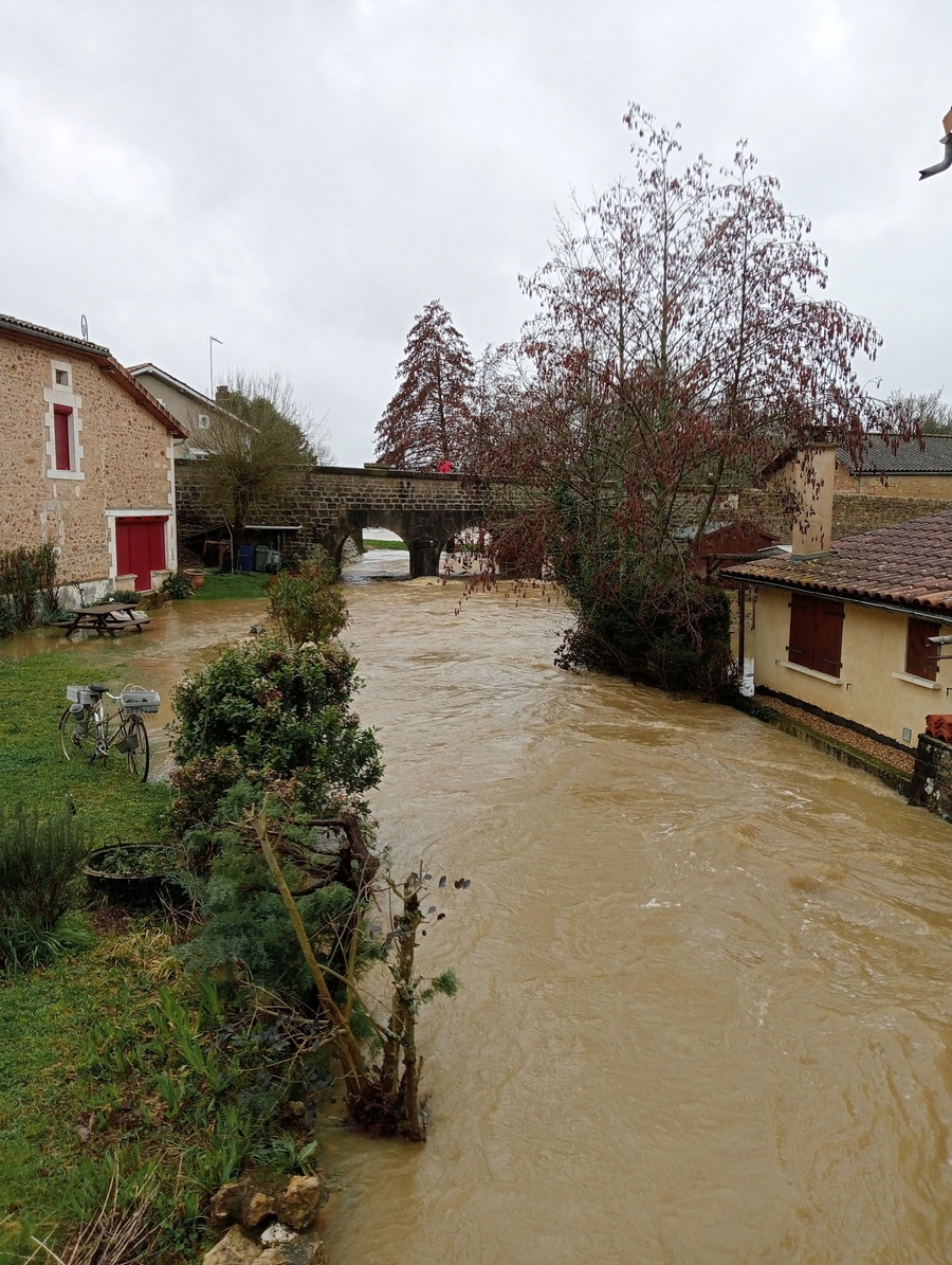 La tempête Joachim souffle sur l'ouest de la France. Les bourrasques (90 à 110 km/h en Charente) sont accompagnées de très fortes précipitations. Les ruisseaux et rivières au repos depuis presque 10 mois ont du mal à absorber toute cette eau soudaine et pourtant attendue.