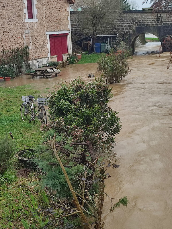 La tempête Joachim souffle sur l'ouest de la France. Les bourrasques (90 à 110 km/h en Charente) sont accompagnées de très fortes précipitations. Les ruisseaux et rivières au repos depuis presque 10 mois ont du mal à absorber toute cette eau soudaine et pourtant attendue.