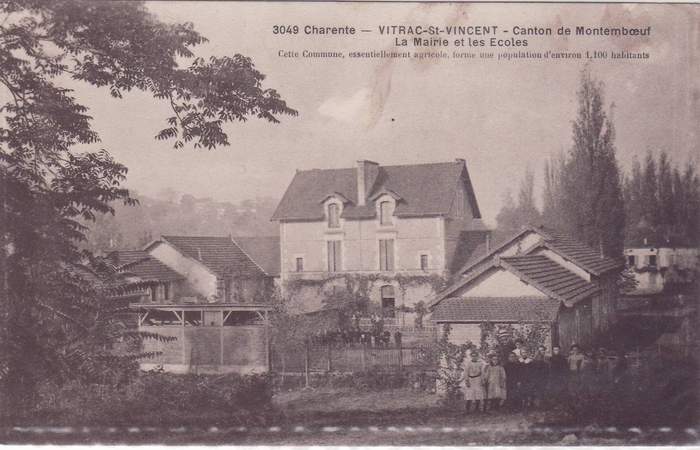 Marie –Louise (dite Louisette) Goursaud née Fourgeaud est née à Vitrac à la Grange en 1929 dans la maison familiale où était née son arrière grand-mère. "Mes grands parents maternels se sont installés à Vitrac en 1900 et mes grands parents paternels en 1911 où ils ont racheté une ferme perdue au jeu par une famille de Cherves. Cette même famille a perdu quatre fermes en une nuit ! A l’époque beaucoup d’habitations du bourg et des hameaux appartenaient à quelques familles riches. L’une d’entre elles, issue de la noblesse avait acquis plusieurs propriétés dont des hameaux entiers à Vitrac, des fermes et un château à Saint-Adjutory. Ce château fut refait dans les années 1890 ce qui nécessita l’emploi permanent d’un maçon. M. Ménard , marié à Mlle Kogeluck, (vos arrières arrières grands parents) qui s’installa à Saint-Adjutory et embaucha plusieurs ouvriers. Ils pouvaient ainsi être à pied d’œuvre du lever au coucher du soleil et c’est Mme Ménard qui leur faisait à manger. Le maître des lieux était très exigeant. Un jour le vétérinaire appelé pour une intervention près des animaux de la métairie se fit héler par le propriétaire : « Monsieur, vous saurez qu’ici c’est la route du château, allez donc passer par la route des métayers. » Le vétérinaire s’exécuta et fit demi-tour. C’est aussi au jeu que votre trisaïeule a perdu le domaine de Russas. C’est elle qui a épousé Albert Kogeluck qui était certainement un émigré politique qui venait de Pologne. Il était colporteur. Lors du décès de sa fille, madame Ménard, ma mère qui s’occupait de la préparation du corps de la défunte, n’oublia pas de glisser dans le cercueil un gilet que son père lui avait laissé et qui faisait partie de ce qu’il vendait de villages en villages. Ce sont ces grands-parents Kogeluck qui ont hébergé votre grand-mère, Octavie Sieur , lorsqu’elle a été nommée institutrice à Saint Adjutory et c’est là qu’elle a connu votre grand-père, André Vergnaud qui est né en 1894."